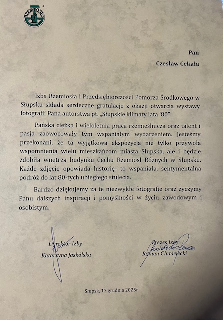 17.12.2025 Uroczyste otwarcie wystawy fotograficznej autorstwa Pana Czesława Cekały „Słupskie Klimaty Lata 80”